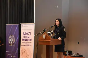 Τον πρώτο κύκλο της εκδήλωσης έκλεισε η Προϊσταμένη του Γραφείου Αντιμετώπισης Ενδοοικογενειακής Βίας Ξάνθης, Υπαστυνόμος Α’ Μαρία Ταρασιάδου, η οποία παρουσίασε το έργο των Υπηρεσιών Αντιμετώπισης Ενδοοικογενειακής Βίας Ανατολικής Μακεδονίας & Θράκης . «Οι μάχες γίνονται πίσω από κλειστές πόρτες. Το νέο σκοτεινό μέτωπο βρίσκεται πίσω από τους τέσσερις τοίχους ενός σπιτιού. Όλοι μαζί σπάμε τη σιωπή που κρατά φυλακισμένο το θύμα», είπε.